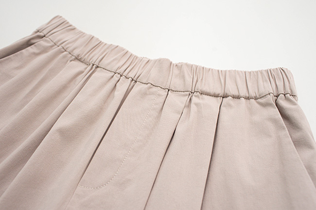 自然打褶與褲口配色設計增添視覺層次感,展現日系隨性感