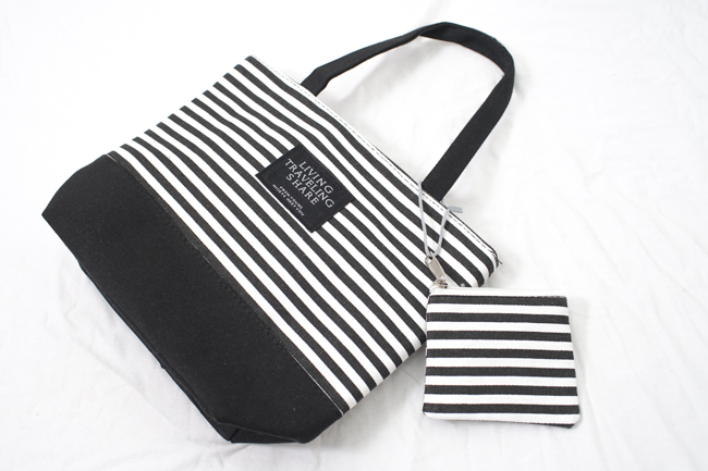 條紋帆布手提托特包(4色)