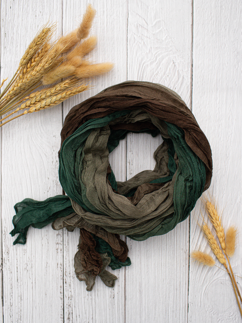 木棕輕語漸層雙色抓皺圍巾(軍綠)