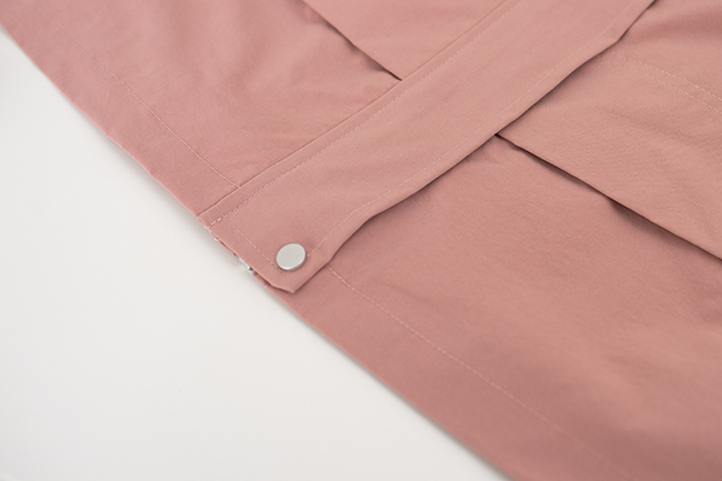 層次連帽長版風衣透膚立領上衣碎花肩帶長洋裝組合