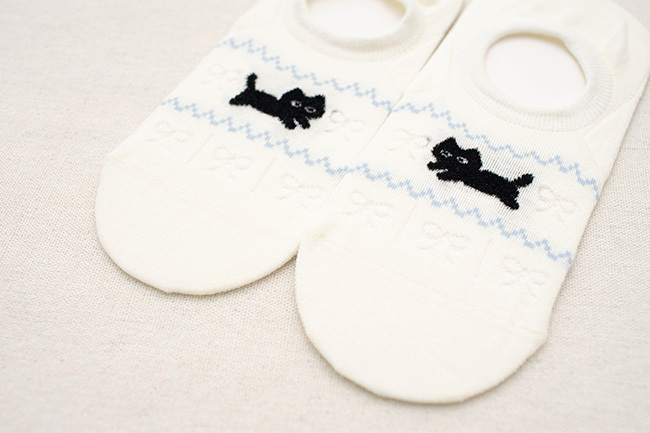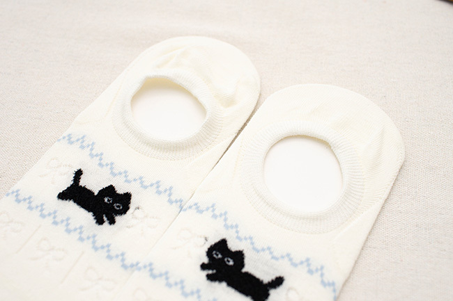 簍空蝴蝶結貓咪船型襪