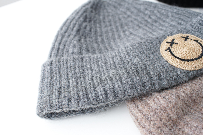 粗針笑臉反摺毛線帽(3色)