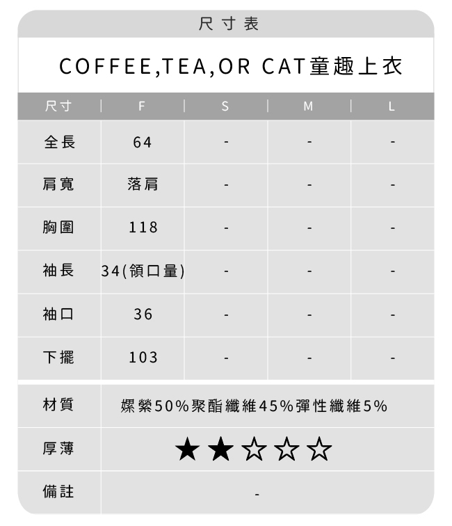 COFFEE,TEA,OR CAT童趣上衣(4色)