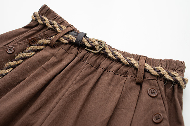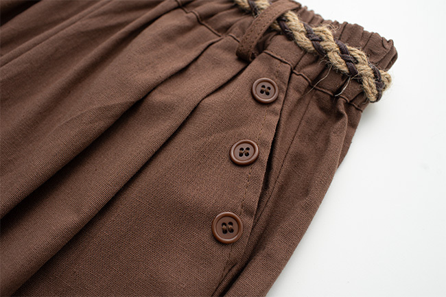 鈕扣棉麻六分寬褲(附編織腰帶)