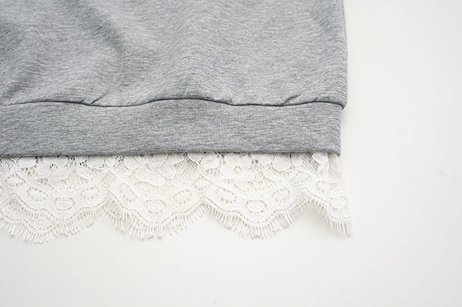 上衣拼接細緻蕾絲,為運動休閒風格增添柔美氣息