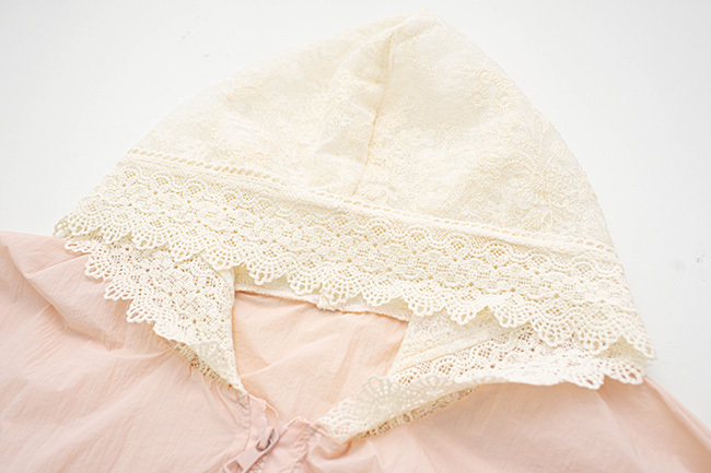 連帽設計搭配刺繡蕾絲細節,展現柔美日系感