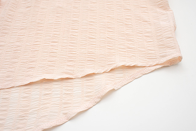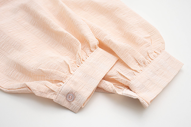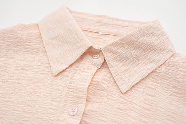 輕薄透氣織紋材質,帶有微透膚感,穿著舒適清爽