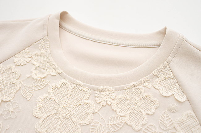 簍空刺繡蕾絲剪接點綴細節,增添溫柔甜美氛圍