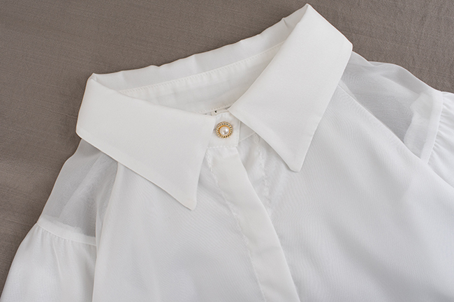 珍珠光花苞袖層次襯衫繭型修身寬褲組合