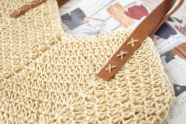 休閒皮革肩背草編包(2色)