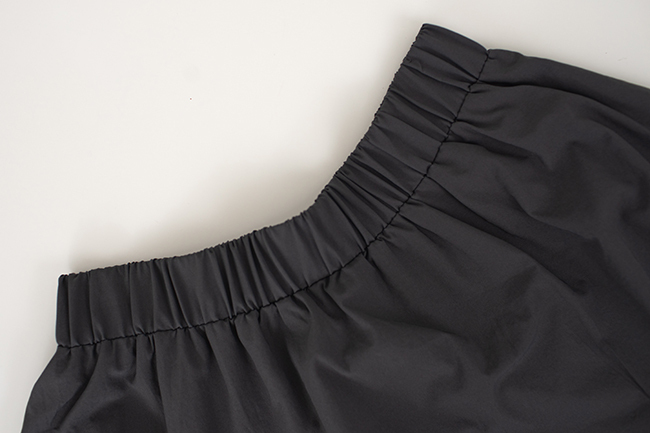拼接仿兩件式上衣自然抓皺氣球感花苞長裙組合