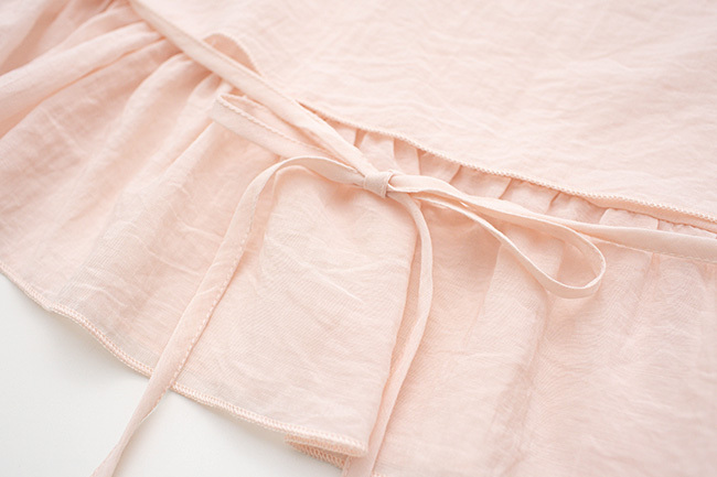 素面長袖設計帶有荷葉邊與綁帶細節,增添溫柔氣息