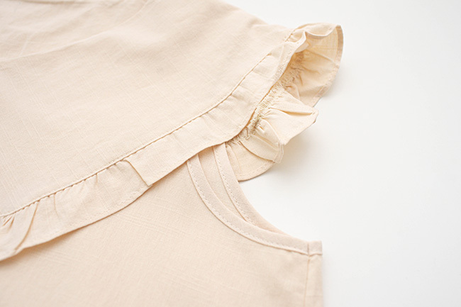 荷葉領片無袖上衣貓咪口袋竹節棉褲組合