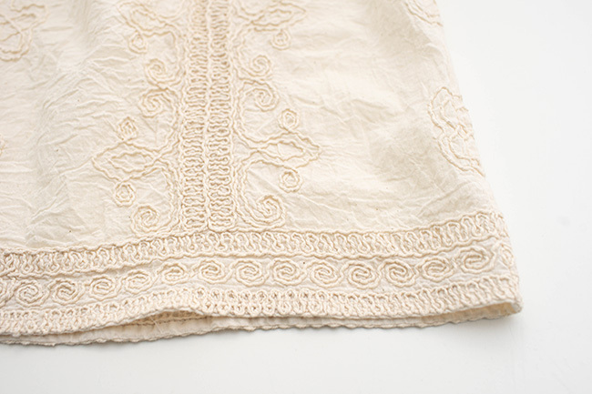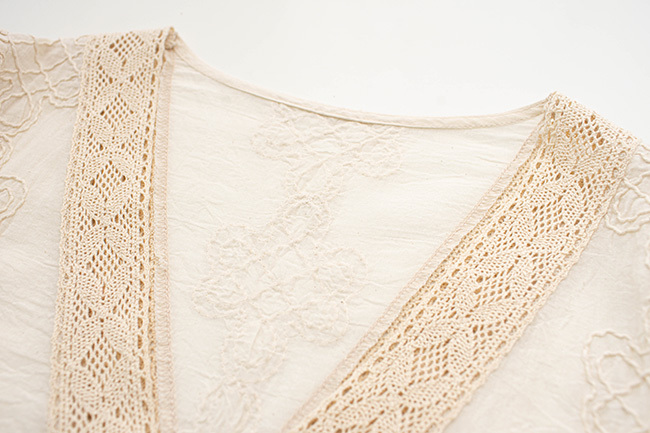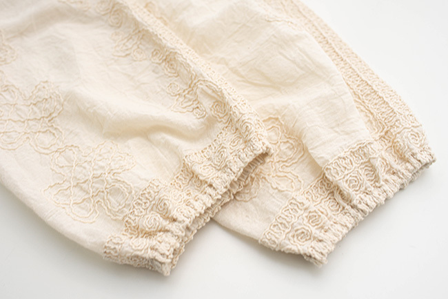 古棉繡花蕾絲上衣木釦背心拚色長褲組合