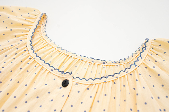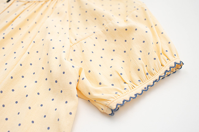 圓點印花圖案清新可愛,滾邊設計增添細節感