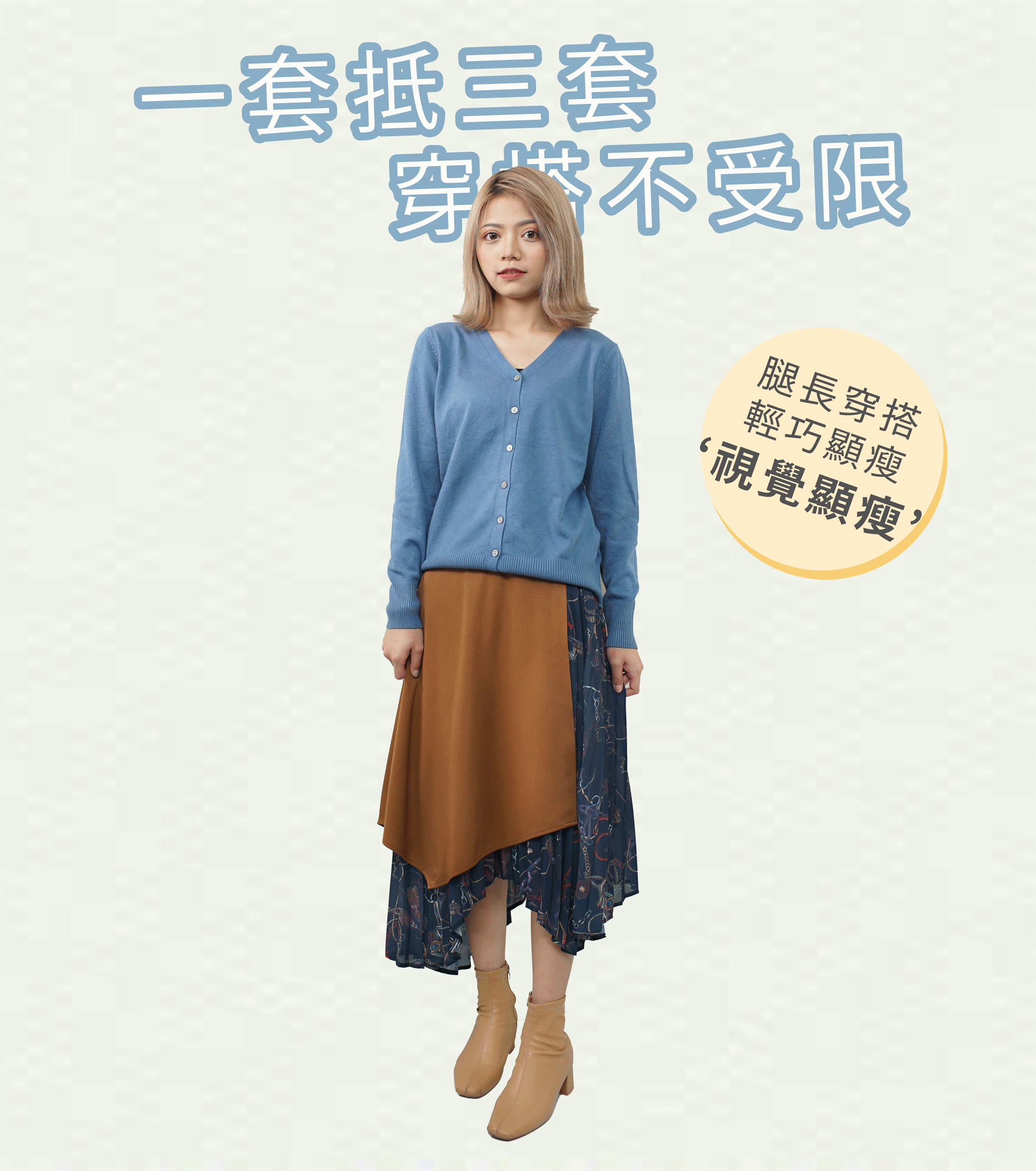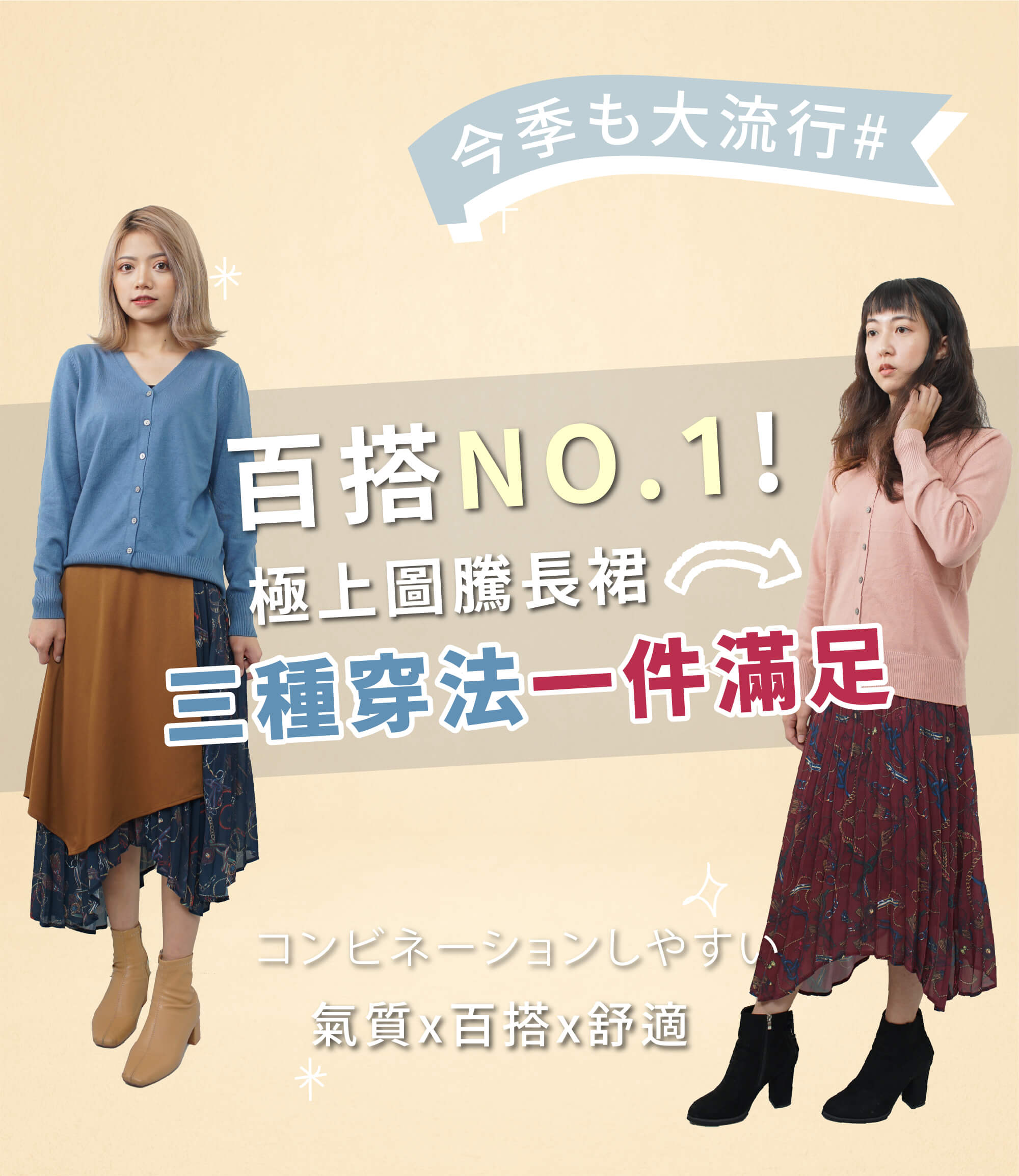經典印花圖騰壓褶三穿式長裙(單位皆為公分)