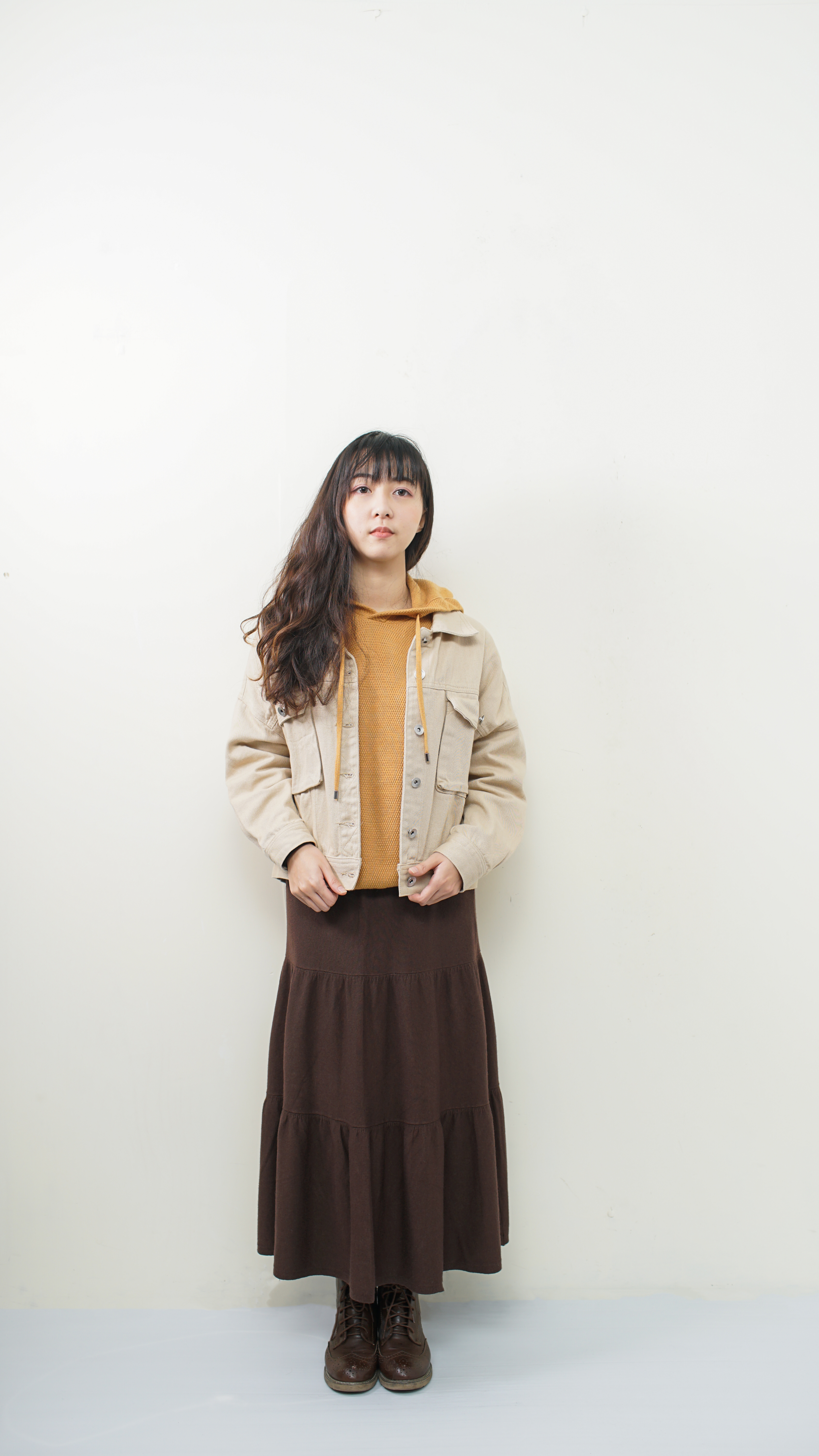 以顏色搭配為主的提案,主角是可可咖啡色的針織裙,