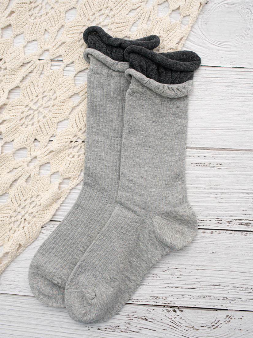 G0252雙層堆堆羅紋中筒襪(淺灰)