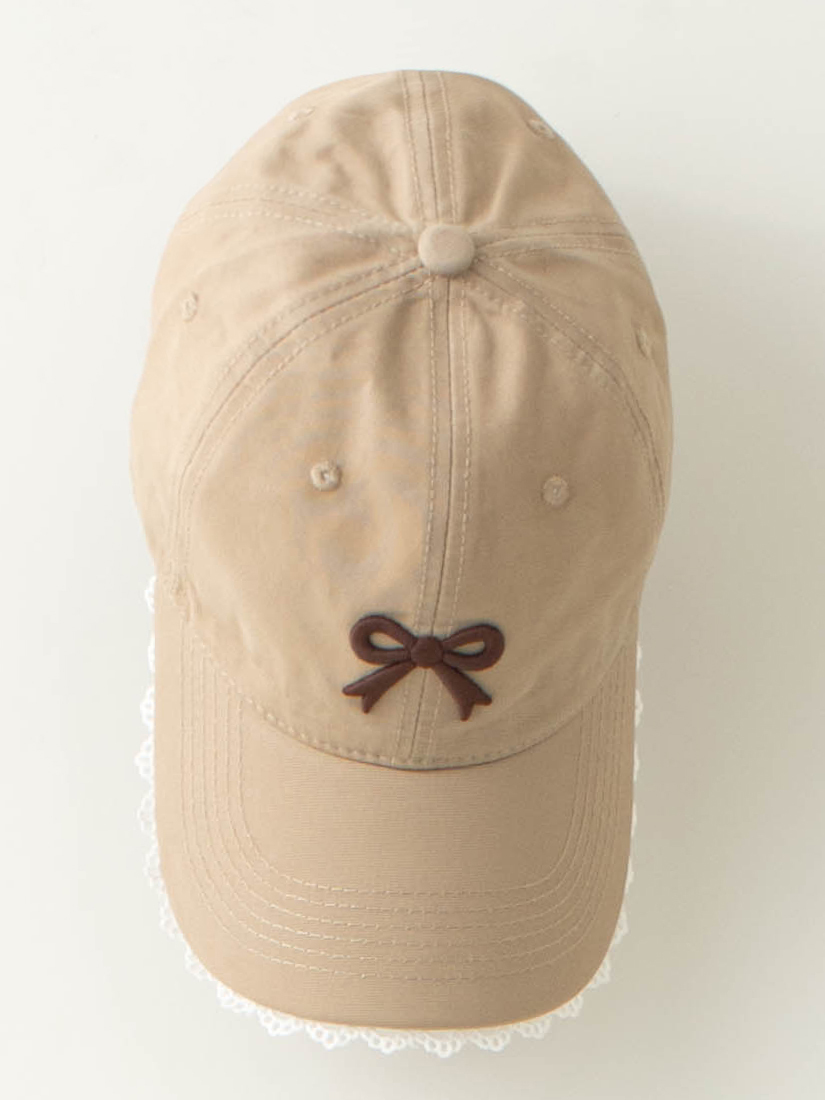H0162蕾絲蝴蝶結刺繡棒球帽(卡其)