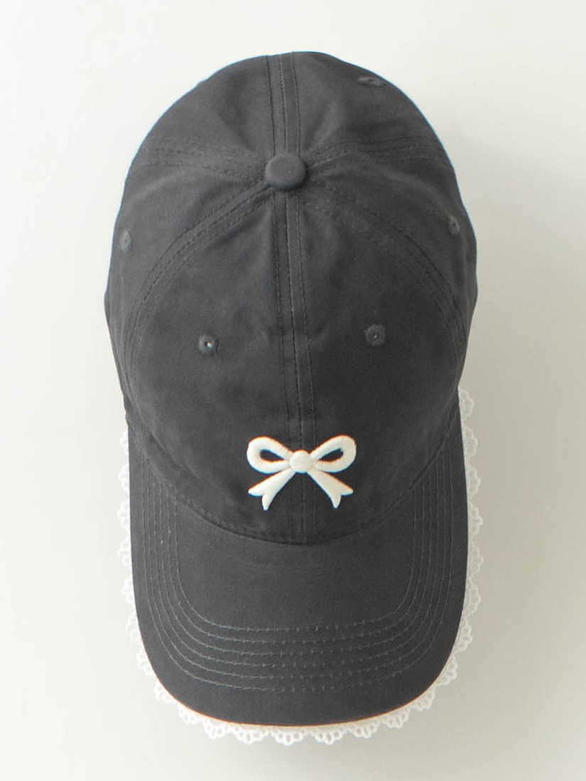 H0162蕾絲蝴蝶結刺繡棒球帽(岩灰)