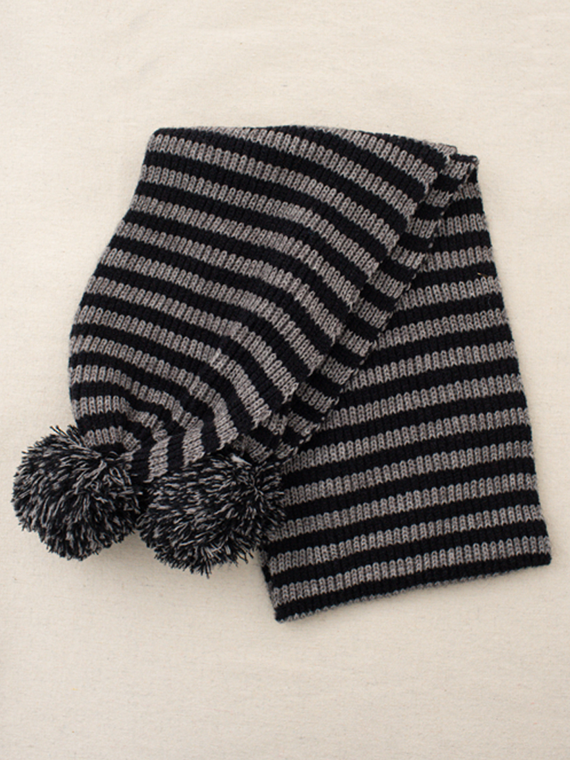 S1175雪人球球鬆軟針織圍巾(黑灰條紋)