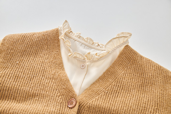 粗織開釦背心荷葉蓬袖襯衫A字長裙組合