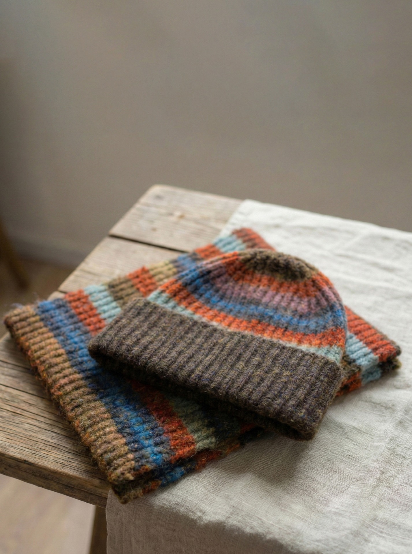 愛爾蘭混色條紋針織毛帽圍巾兩件組(咖啡褐)