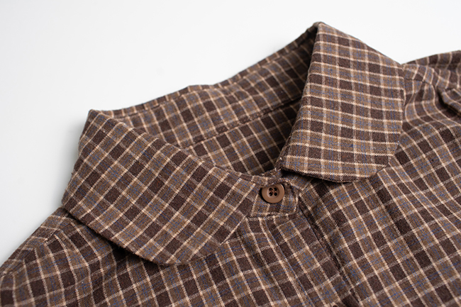 輕磨毛格紋洋裝繡花寬褲