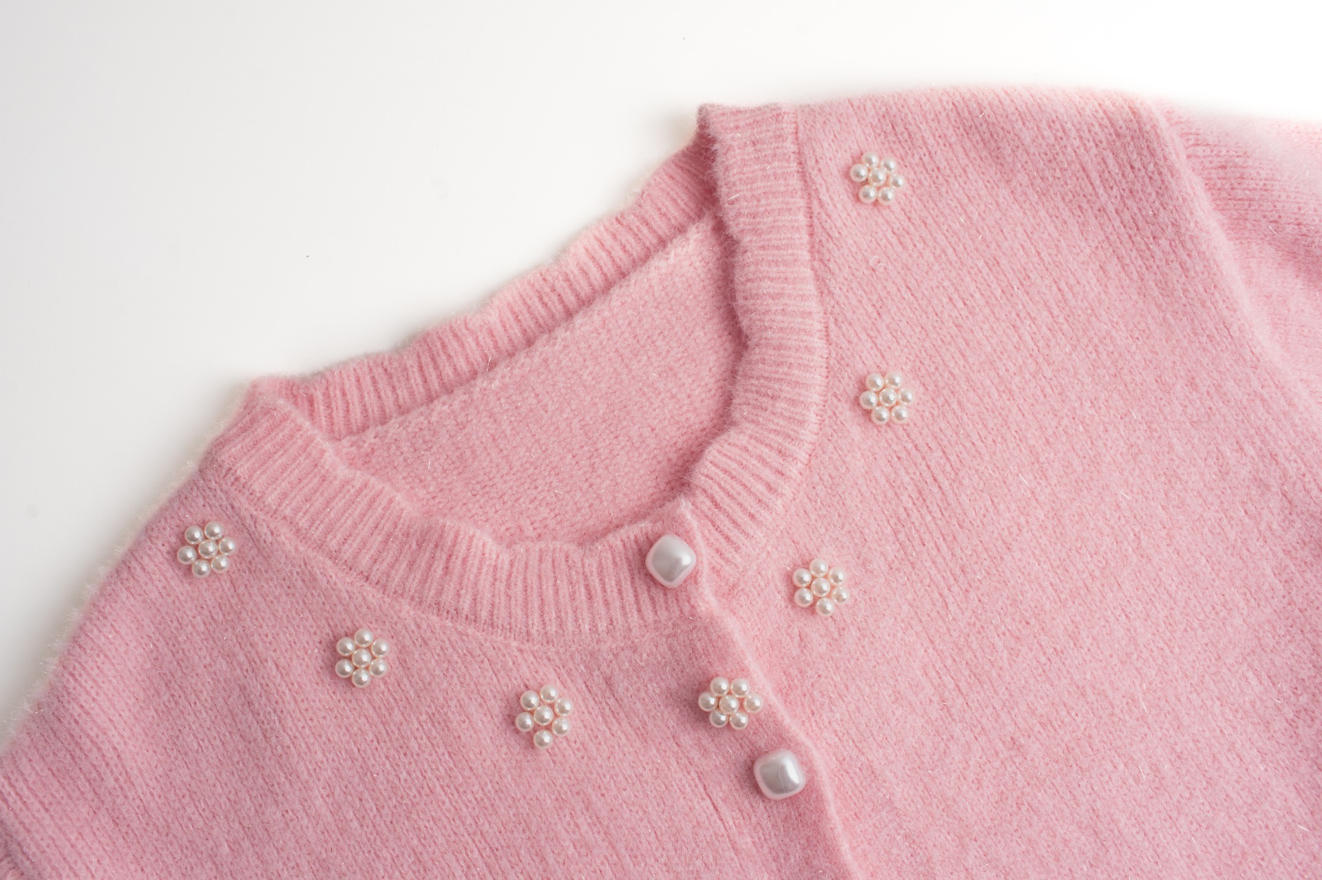 珍珠小花針織外套羅紋針織上衣紋壓褶絨裙