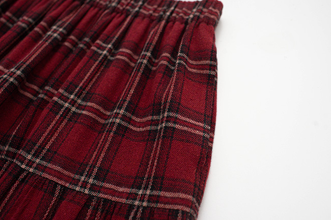 珍珠絨毛針織上衣格紋法蘭絨蛋糕長裙組合