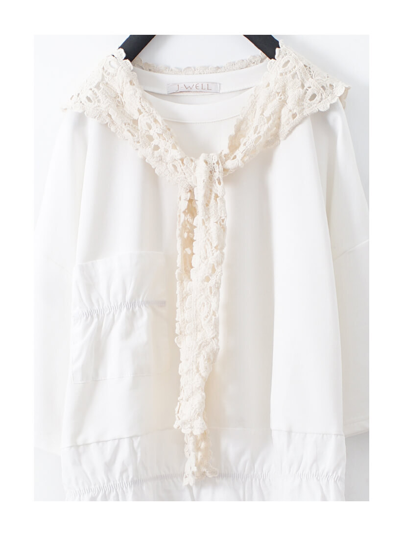 復古勾花蕾絲領片(杏)