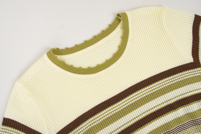 微簍空針織短袖跳色配釦剪接設計寬褲組合