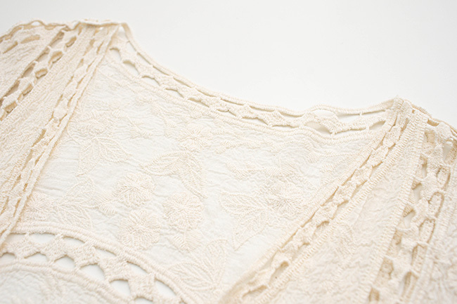 波西棉簍空罩衫荷葉小立領襯衫繡花純棉寬褲組合