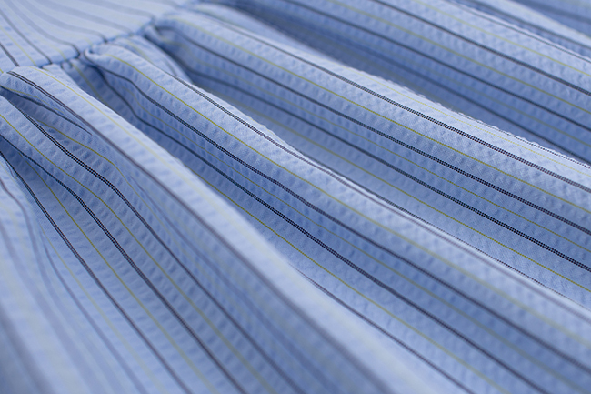 緹花半拉鍊連帽上衣條紋泡泡布抽皺長裙組合