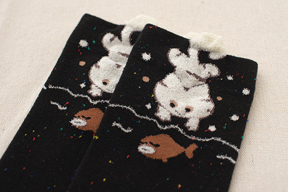 調皮小貓咪茸毛中筒襪
