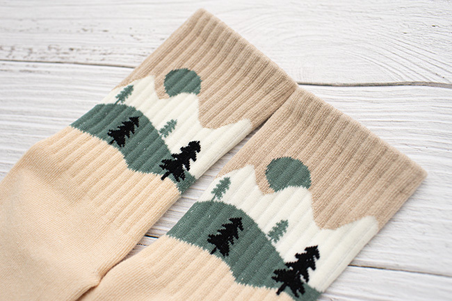 森林羅紋中筒棉襪