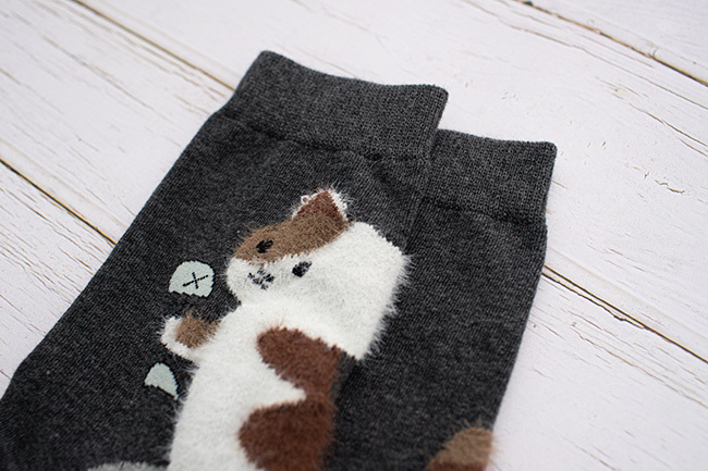 貪吃貓咪絨毛中筒襪