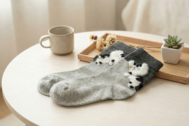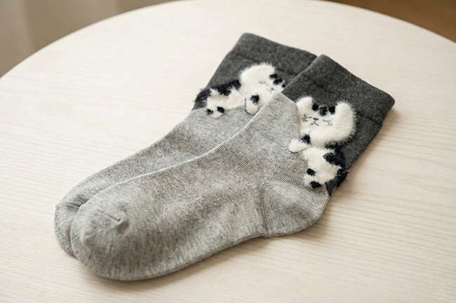 抱睡絨毛貓咪中筒襪