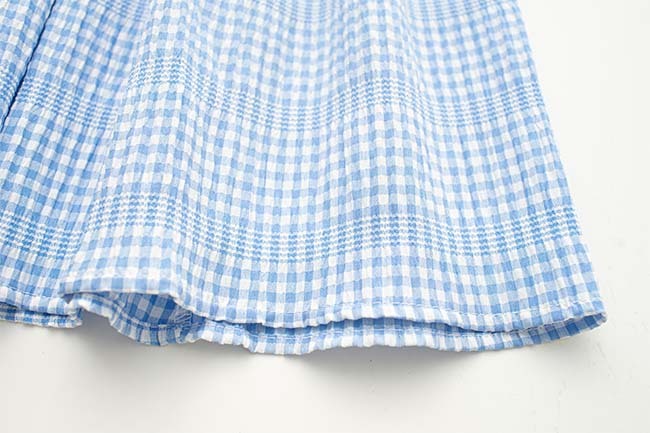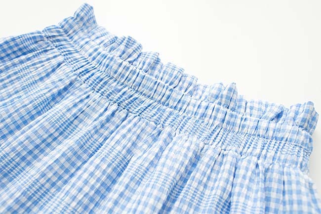 泡泡布格紋高腰蛋糕長裙