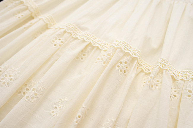 繡花棉布蕾絲細褶長裙
