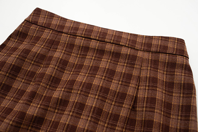 輕磨毛格紋鬆緊腰後開衩H型顯瘦長裙