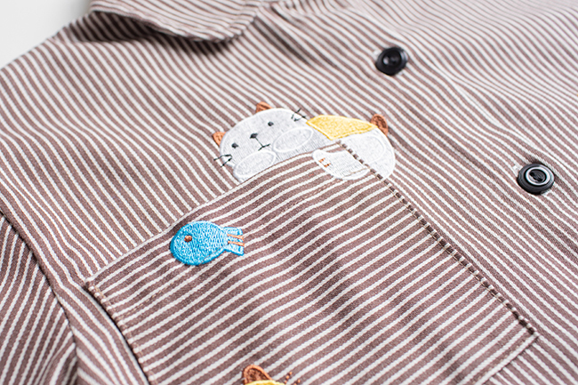 童趣貓咪條紋牛津布長袖襯衫