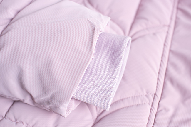 選用輕盈保暖的鋪棉材質,表面剪接壓紋設計增添層次與質感