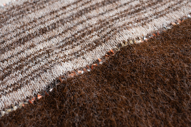 選用帶有混色坎紗的針織面料,條紋織紋展現細膩柔和的層次感