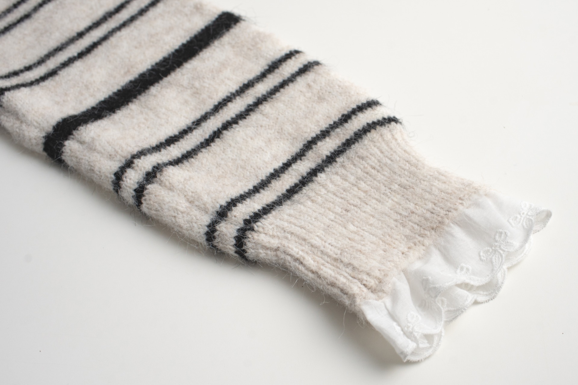 溫甜氣質棉布蕾絲條紋針織毛衣