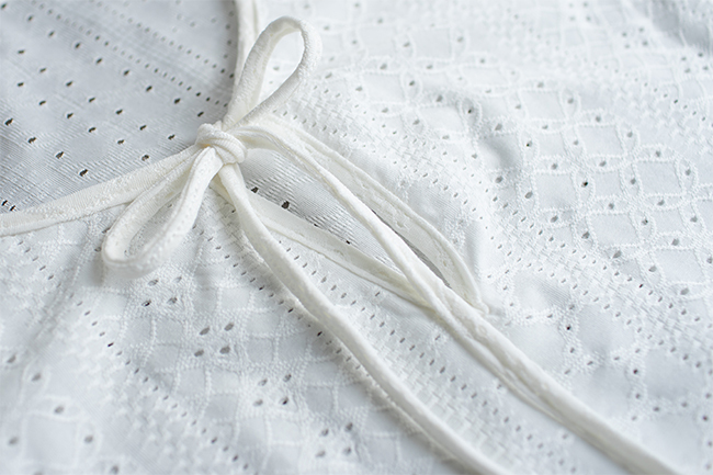 領口的細繩綁帶設計可自由變換風格,增添精緻亮點