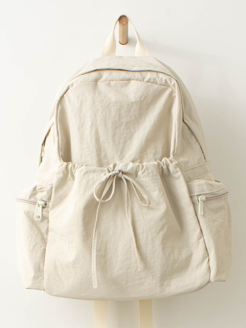 B1184輕甜抽皺蝴蝶結後背包(燕麥白)