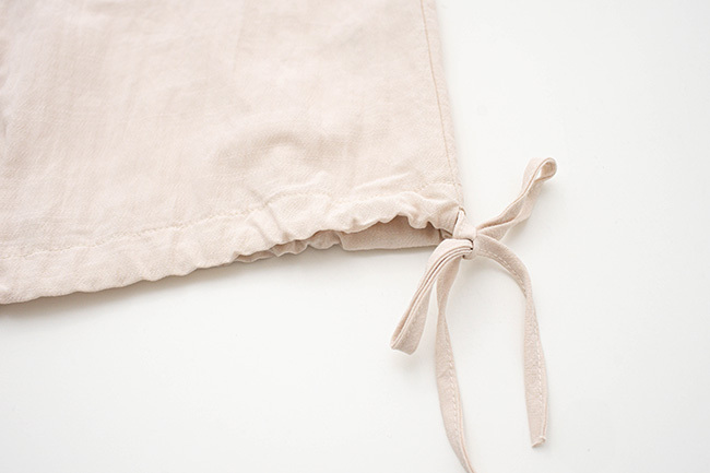 落肩抽繩上衣側抓褶連袖上衣繡花寬褲組合