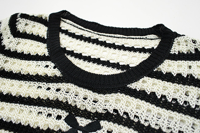 條紋簍空蝴蝶結上衣簍空織帶蛋糕裙組合