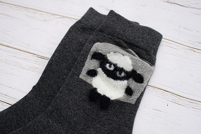 黑綿羊絨毛口袋中筒襪